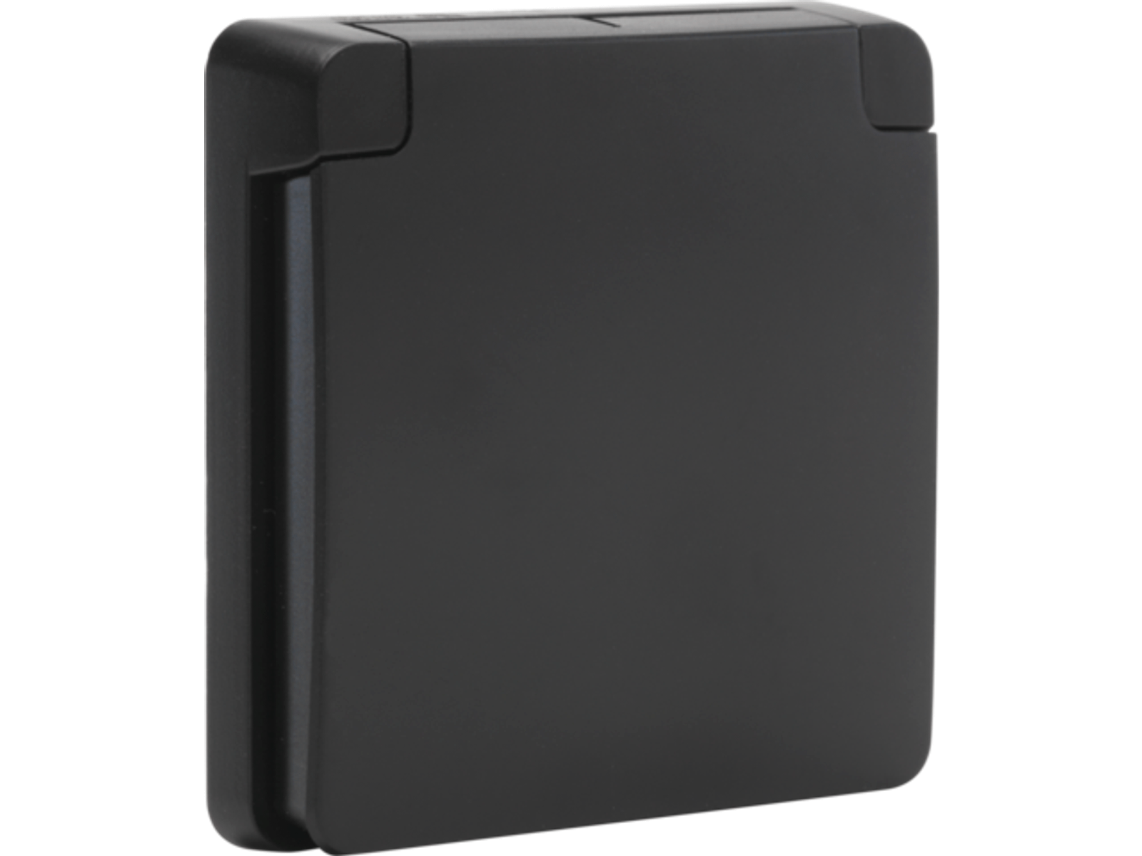 Dit aanpaskader wordt gebruikt om 45 x 45 mm-functies in spuitwaterdichte opbouwdozen in te bouwen. Het is geschikt voor datamodules, telefooncontactdozen, audio-aansluitingen en TV/FM-contactdozen. Het aanpaskader is voorzien van een beschermklep met scharnieren. Kleurcombinatie: black.