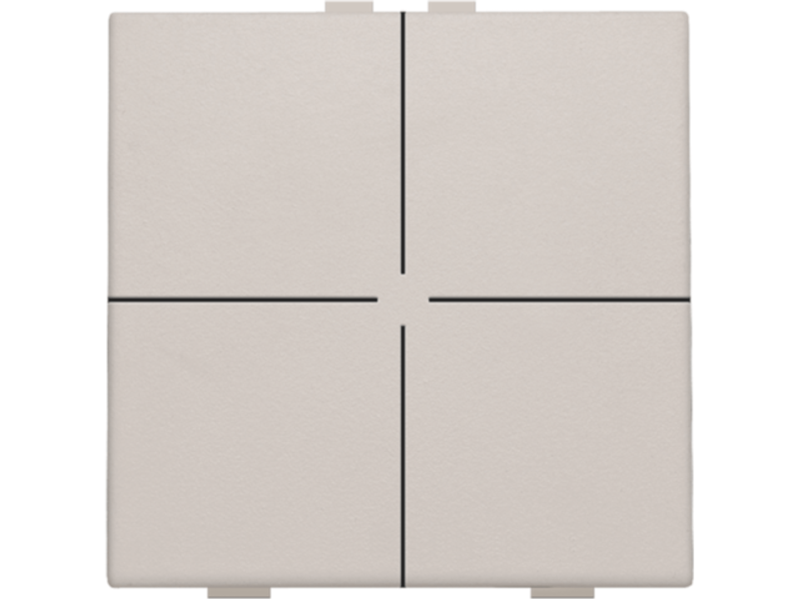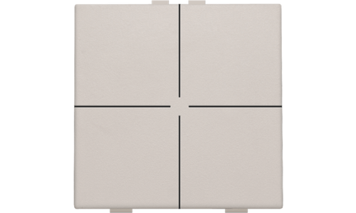 Met deze drukknop voer je vier bedieningen uit. Hij wordt via een klikmechanisme op de muurprint bevestigd. Mechanisme inclusief toets. Afwerkingskleur: light grey.
