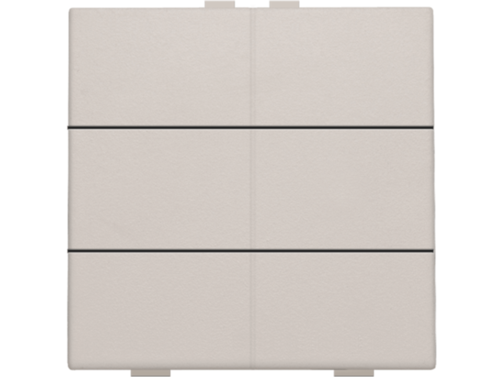 Met deze drukknop voer je zes bedieningen uit. Hij wordt via een klikmechanisme op de muurprint bevestigd. Mechanisme inclusief toets. Afwerkingskleur: light grey.