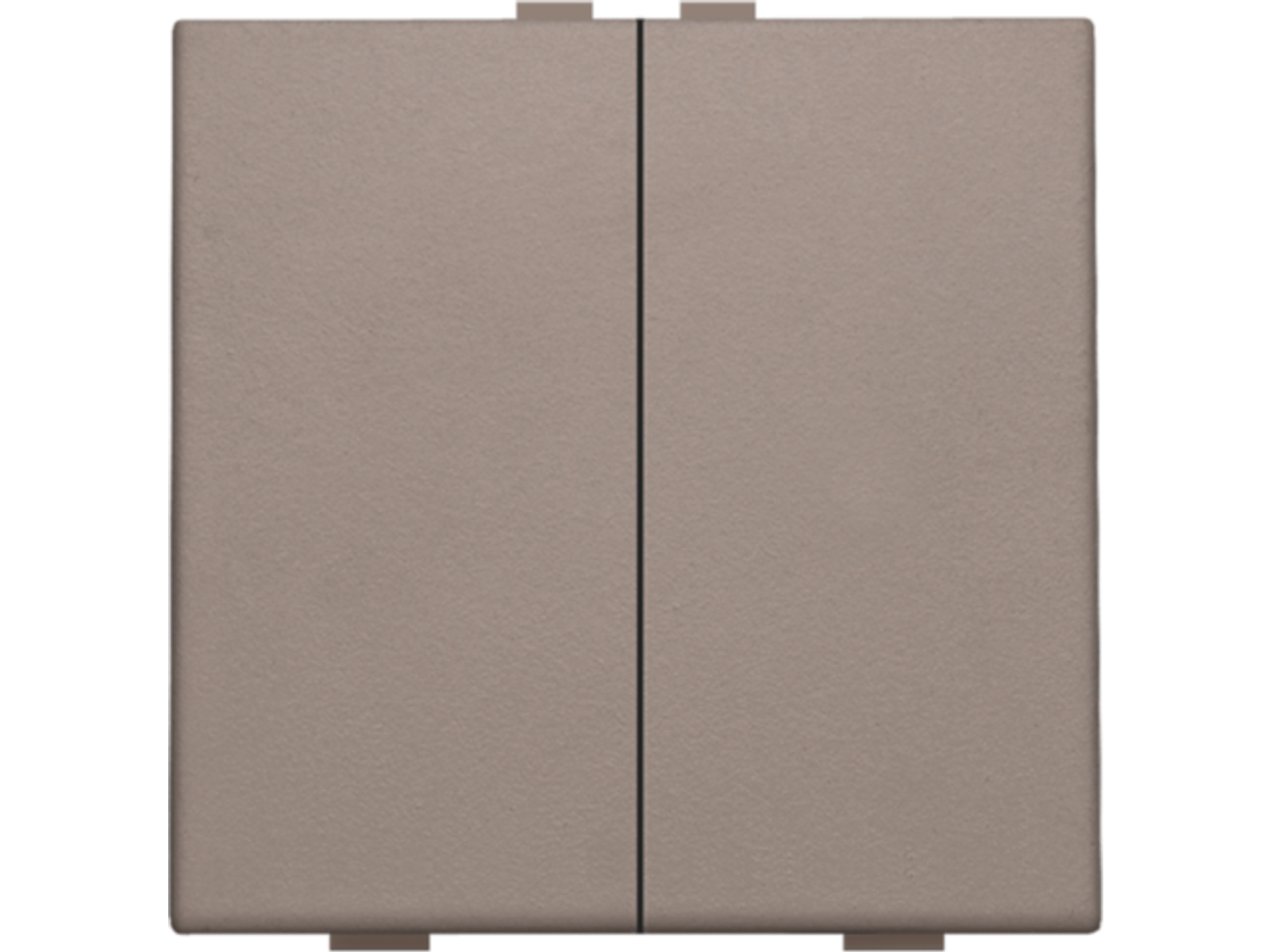 Met deze drukknop voer je twee bedieningen uit. Hij wordt via een klikmechanisme op de muurprint bevestigd. Mechanisme inclusief toets. Afwerkingskleur: greige.