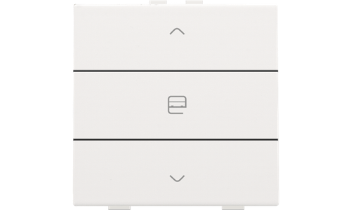 Met deze drukknop stuur je één rolluik, gordijn of zonwering. Hij wordt via een klikmechanisme op de muurprint bevestigd. Mechanisme inclusief toets. Afwerkingskleur: white coated