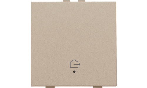 Met deze drukknop met het symbool "woning verlaten" voer je één bediening uit. Met deze knop kan de bewoner alle lichtpunten in zijn huis uitschakelen, evenals bepaalde toestellen die een veiligheidsrisico kunnen vormen (strijkijzer, kookplaat, frietketel). Je bepaalt in de programmeersoftware eenvoudig welke lichtpunten/toestellen uitgeschakeld worden. Hij wordt via een klikmechanisme op de muurprint bevestigd. Een led geeft aan of het licht aan- of uitgeschakeld is. Mechanisme inclusief toets. Afwerkingskleur: champagne coated.
