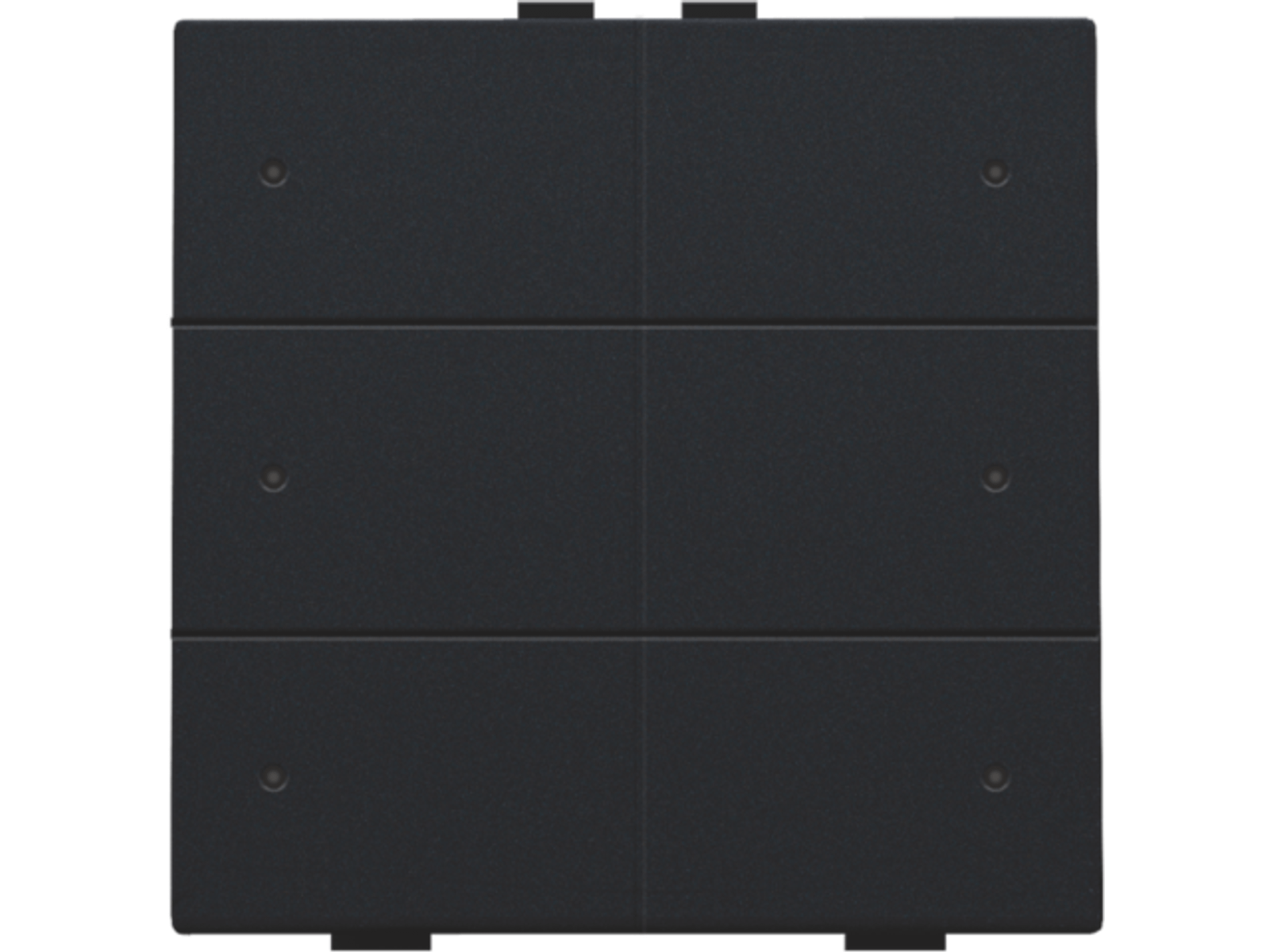 Met deze drukknop voer je zes bedieningen uit. Hij wordt via een klikmechanisme op de muurprint bevestigd. Een led geeft aan of het licht aan- of uitgeschakeld is. Mechanisme inclusief toets. Afwerkingskleur: black coated.