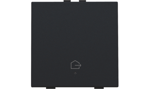 Met deze drukknop met het symbool "woning verlaten" voer je één bediening uit. Met deze knop kan de bewoner alle lichtpunten in zijn huis uitschakelen, evenals bepaalde toestellen die een veiligheidsrisico kunnen vormen (strijkijzer, kookplaat, frietketel). Je bepaalt in de programmeersoftware eenvoudig welke lichtpunten/toestellen uitgeschakeld worden. Hij wordt via een klikmechanisme op de muurprint bevestigd. Een led geeft aan of het licht aan- of uitgeschakeld is. Mechanisme inclusief toets. Afwerkingskleur: black coated.