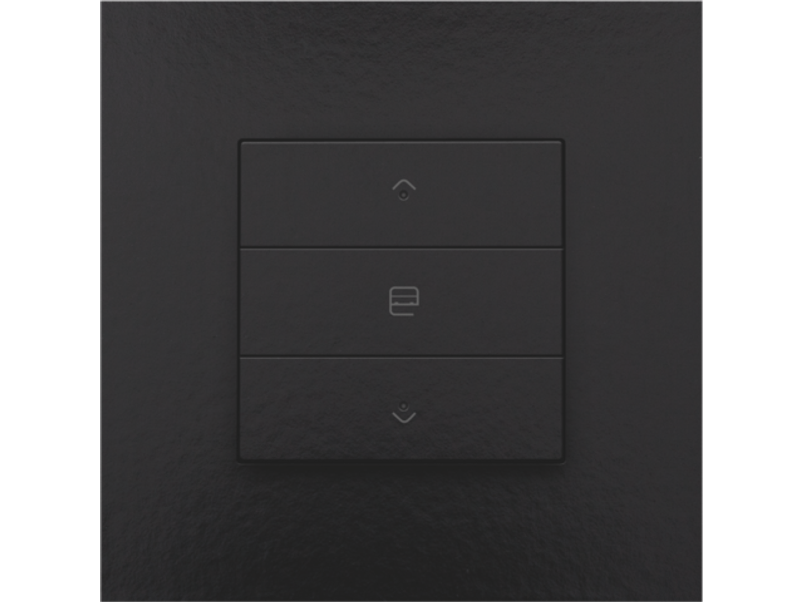 Met deze drukknop stuur je een groep van rolluiken, gordijnen of zonweringen. Hij wordt via een klikmechanisme op de muurprint bevestigd. Een led geeft aan in welke positie het rolluik, het gordijn of de zonwering zicht bevindt. Mechanisme inclusief toets. Afwerkingskleur: Bakelite® piano black coated.