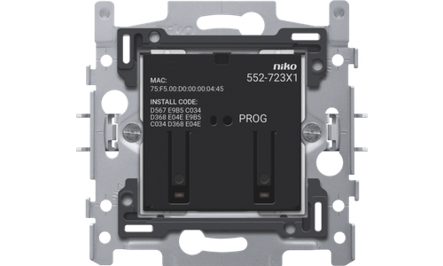 De geconnecteerde Zigbee® motorbediening bevat een schakelcontact om een 230V-gestuurde motor te bedienen. Hij bevat een zender en ontvanger die draadloos communiceren met de draadloze draadloze slimme hub voor Niko Home Control.