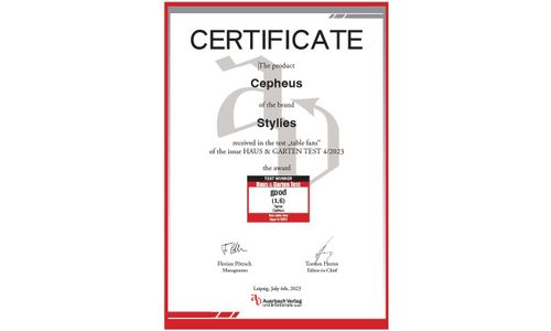 Cepheus, uw persoonlijke tafelventilator die u werkelijk overal verkoeling kan brengen. En het is waarschijnlijk ook de mooiste tafelventilator door zijn verfijnd design en materialen van hoge kwaliteit. De ventilator kan zowel op de vloer, op de tafel of op je bureau geplaatst worden. Dankzij de 12 snelheidsniveaus kan alles van een zeer stille, zachte bries tot een sterke windvlaag worden geselecteerd voor ieders behoefte. Bovendien kan de Cepheus van link naar rechts draaien op 30°, 60° of 90°.